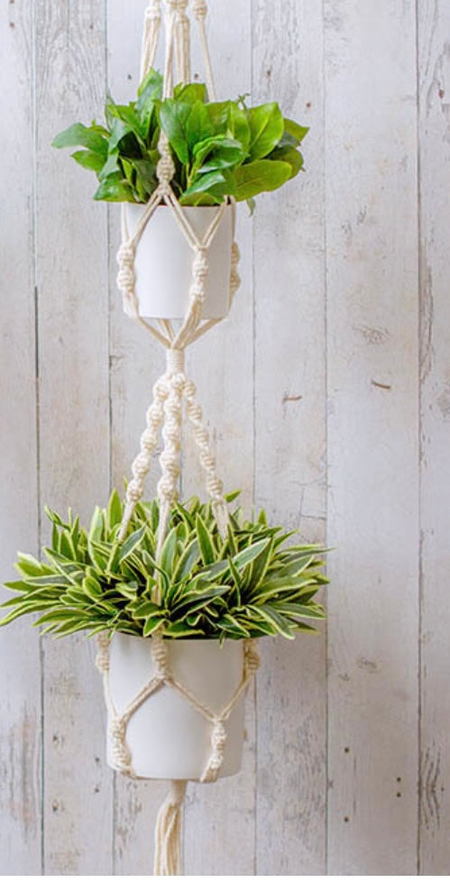 These functional macrame hanging pot holders are the perfect addition to any space.